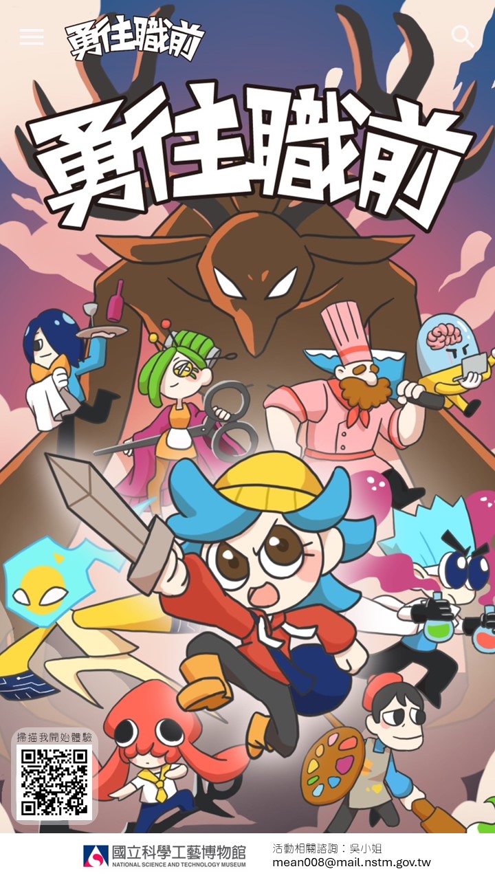 一、為推廣技職教育,本館設置「勇往職前」技職15職群展廳 串聯線上學習單,結合常設展示廳參觀及藉此引介技職15 職群職涯發展簡介(https://sites.google.com/view /braveinnstm/%E9%A6%96%E9%A0%81),提供學子職涯探 索,歡迎來館參觀並多加利用。