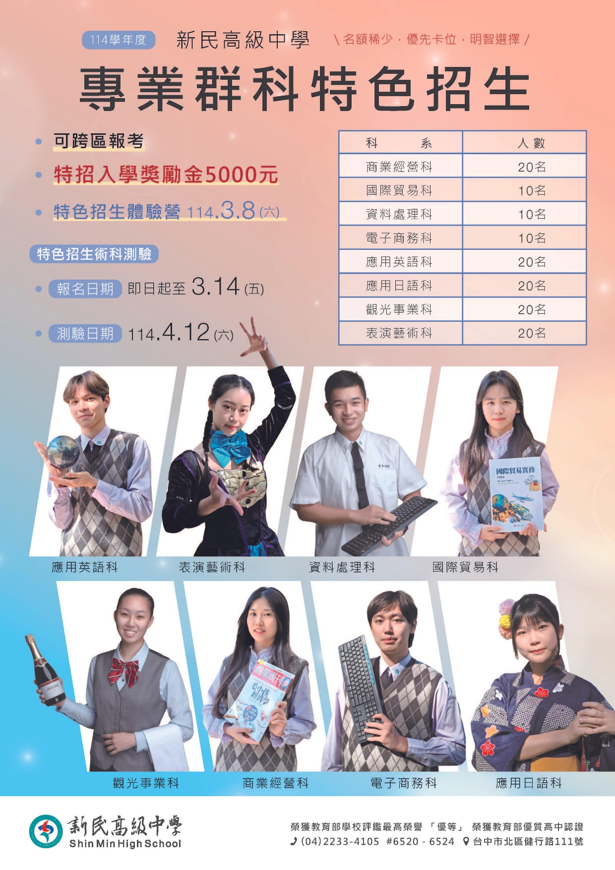 二、114學年度該校各科招收名額(如附件1特招DM)