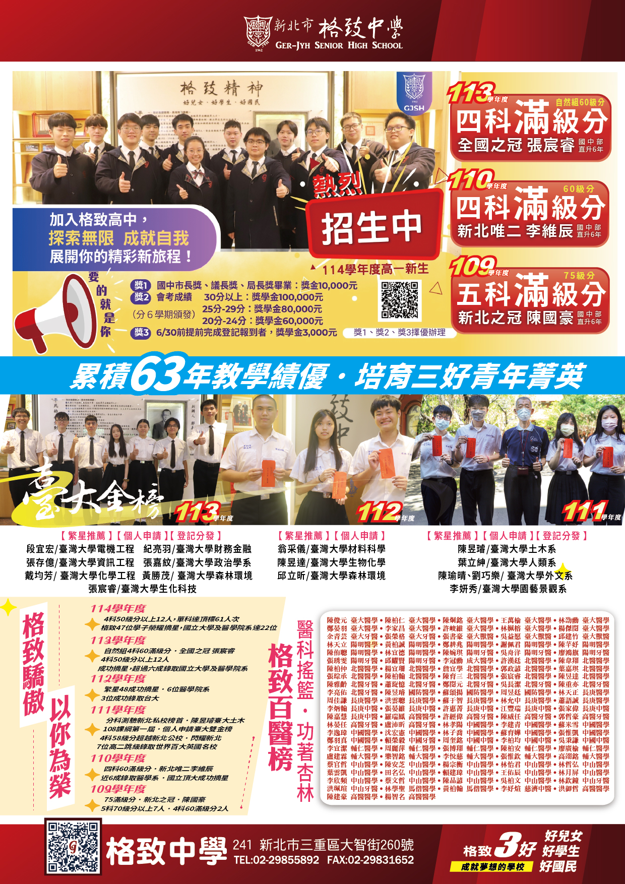 二、本校設有優厚獎學金,歡迎貴校同學登記入學。