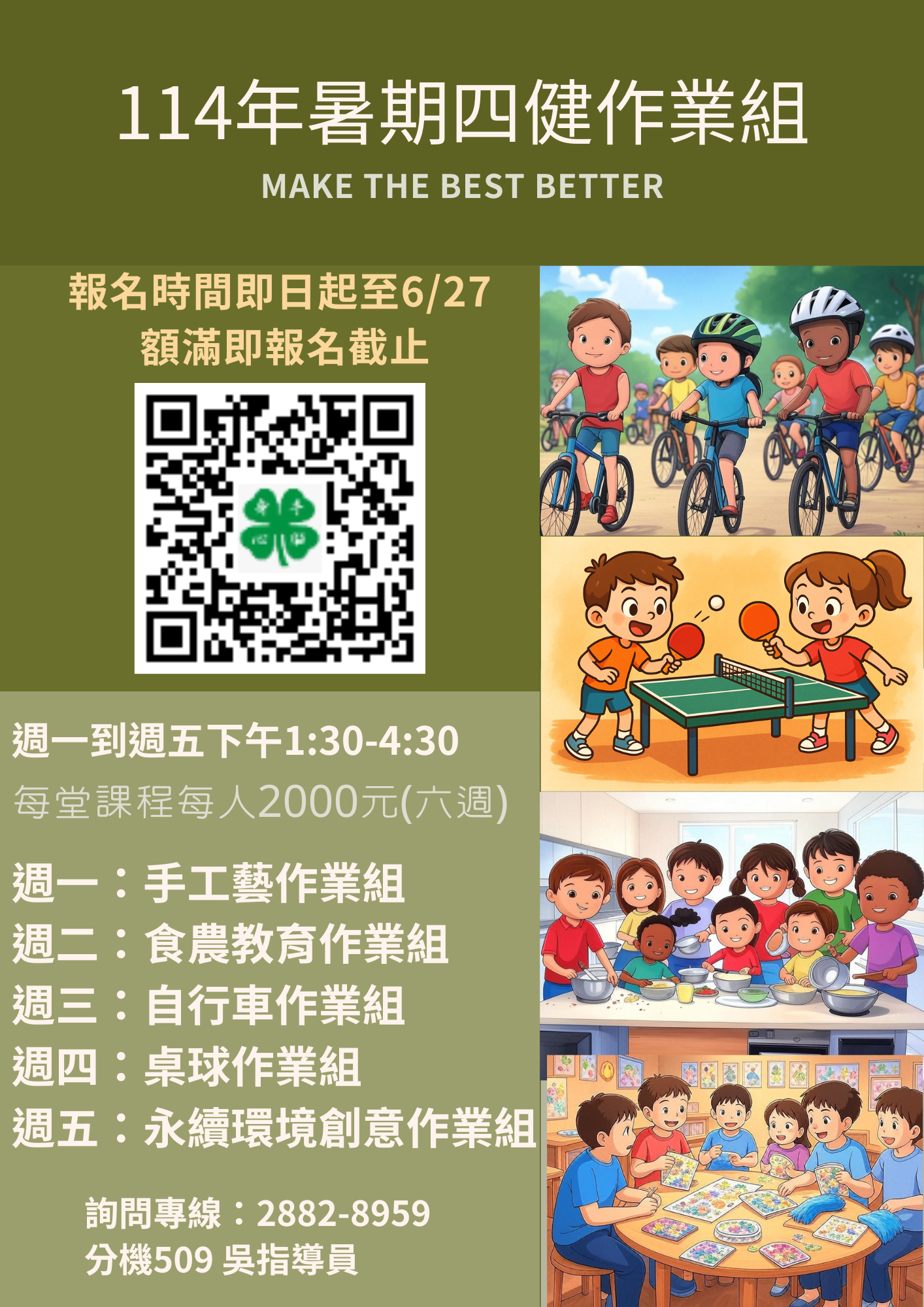 一、為嘉惠士林區學子並落實四健會精神,本年度暑期四健作 業組開放招募轄區學子。