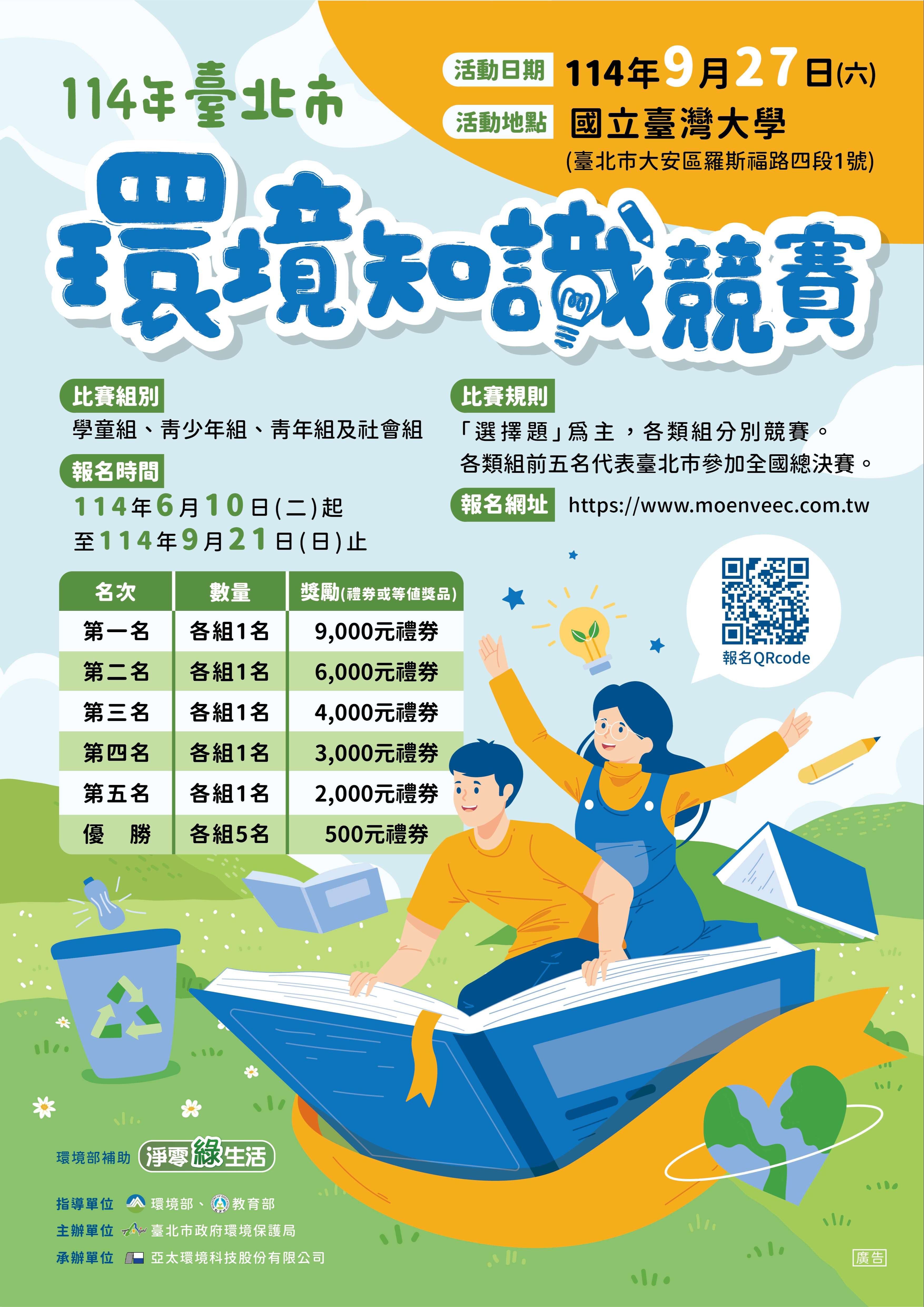 二、檢附114年環境知識競賽須知、114年臺北市環境知識競賽 須知及海報各1份。