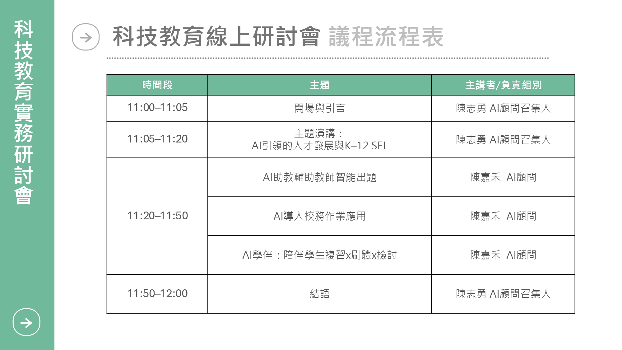 一、邀請對象:各級學校校長、各處室主任/組長、導師及科 任教師,資訊體系資訊組長/資訊承辦,及教務處、學務 處、輔導室同仁與校務推動相關人員參與科技教育實務線 上研習會線上研習會。
