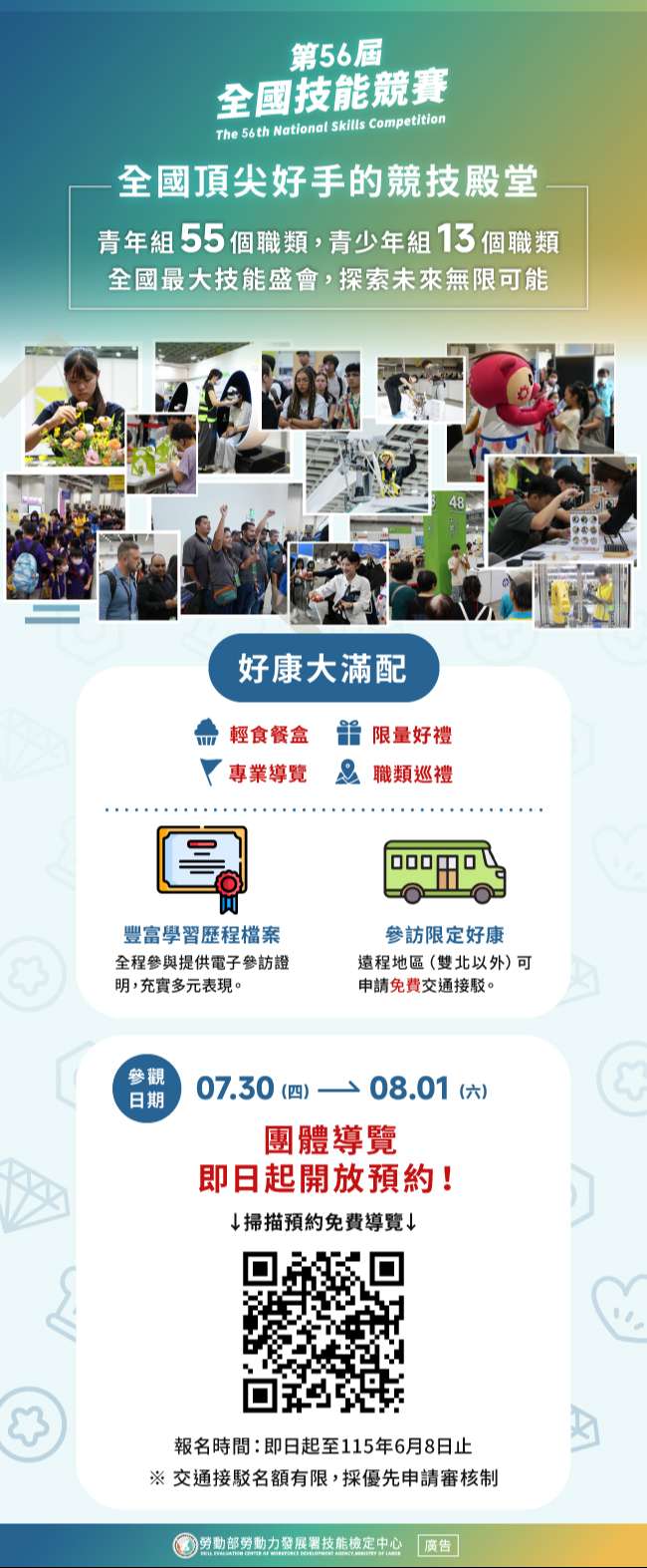 1、2 號)舉辦,本次辦理青年組55職類與青少年組13職