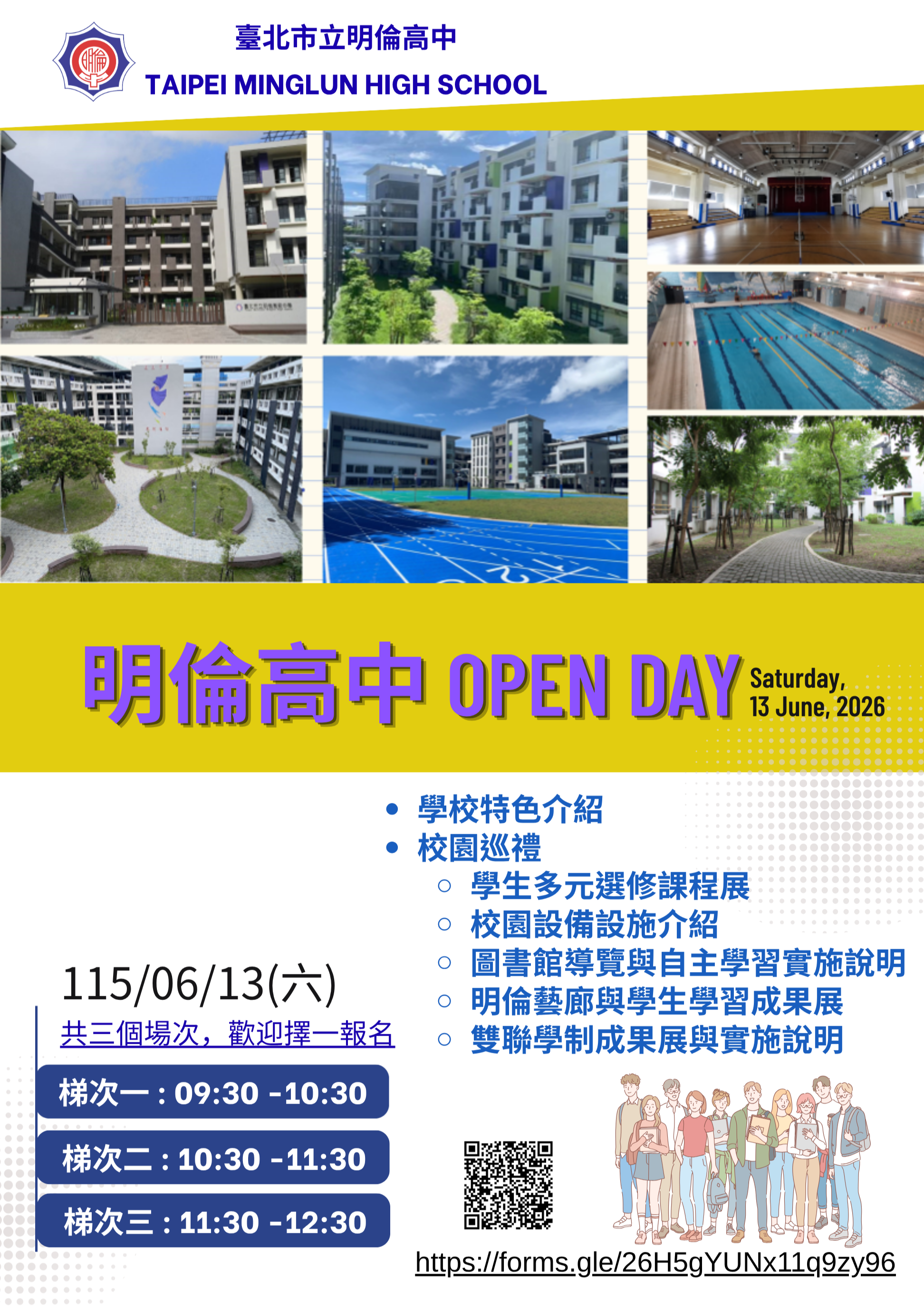 一、為協助九年級同學與家長認識明倫高中的校園環境與特色